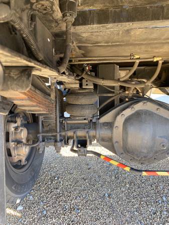 THE TRUCK IS ON BAGS, IT BRINGS ITS OWN CONTROL TO CALIBRATE HOW HIGH OR LOW WHEN LOADED, AND IT HAS A 12 LAYER LEAF SPRING ON EACH SIDE OF THE TRUCK