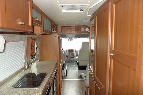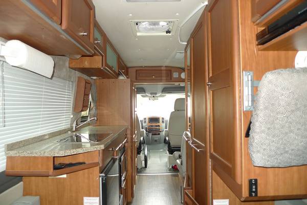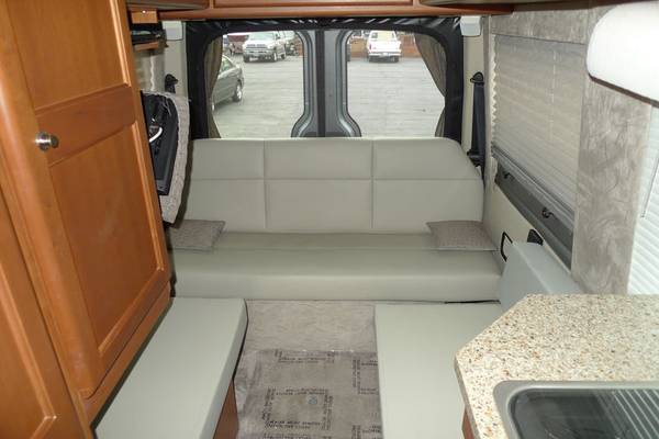 The BEST way to experience your adventure is in this fully equipped van with navigation and all the driving safety features including a backup camera. The 2013 Roadtrek RS Adventurous Sprinter is built on a Sprinter 3500 chassis and powered by a Mercedes 3.0L V6 engine, built for long trips. Rig has 7 seatbelts; driver, passenger and 2 other up front are all cozy captain chairs and 3 more seatbelts alongside each other at rear bench seat. Solar panels on top keep the batteries topped off and the onboard gen provides energy for the van's air conditioner and AC power outlets. Great sound system, TV and DVD player. You will feel very comfortable driving this vehicle, just like any other SUV or pickup truck. All Wheel drive. Dual wheels. King Bed sized sleeping set up when rear bench is electronically set into position. There are two other twin set ups for sleeping using the captains chairs. Outdoor shower. Indoor shower with toilet and sink. Screened windows, AC and vented fan from the ceiling. Integrated heather. Van has a two burner stove, sink, microwave, good sized mini fridge, and ample storage for all your needs. Stock up with all your meals, fresh and frozen and drinks! Lots of other storage for your personal items like, clothing and shoes.