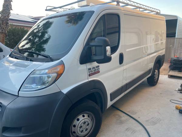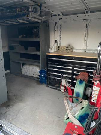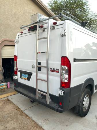 2017 Ram 1500 Promaster Van 98,000 miles and no issues. New transmission covered by warranty 3 years ago. New oil filter cooling assembly swapped out for the upgraded aluminum one. Bench seat passenger side, seat covers used always. Clean inside and out. Separated cab from back. Built out with shelving, nice tool box/ parts holder, ladder rack inside, no windows, puck locks, pipe chase, pipe rack, keyless entry, key fob, V-6 3.8L , Spare tire, rear ladder to access rack and pipe chase (diamond plate) . Ready to put a service guy in and go make some money. Excellent condition, must sell to cover expenses. My loss your gain. Just drove it to Arizona and back and it drove like a champ, it ran great ! Just saying because I don't really get to drive all my service vehicles.