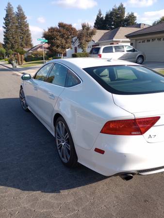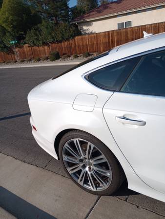 Audi A7 Quattro Sportsback 2013 Low Mileage. Luxurious and sporty sedan. Excellent Condition. Clean Title. - Sleek white exterior with black interior. Pampered vehicle. Turns heads wherever you go. Supercharged V6 engine and 8 speed transmission provide powerful speed and performance. Features include: navigation system with Audi connect, large screen display, blind spot alert, cooled and heated seats, moon/sun roof, LED headlamps, satellite radio, hands free phone, backup camera, power lift gate, alloy wheels, keyless entry, cruise control and more. This call had it all !!!! Call for details or to test drive. Asking $14995 OBO.