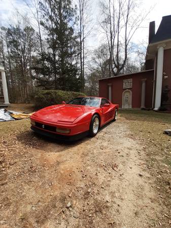 1988 Ferrari Testarossa REPLICA. Please Read Carefully! Please Do Not Ask me if it is still available. I WILL NOT ANSWER YOU. Thank you. This is a Very Beautiful Italian Inspired Replica. It do not turn a few heads; it turns a lot of heads. The car runs and drives very well. The car does not over heat. The engine and transmissions has been gone through. It has a Corvette V8 engine and a 5 speed Pontiac transmission. The paint looks awesome; it looks like it has just been painted. The interior is in mint condition. The car has Real Ferrari lights and badges and emblems. The gear shift lever has the Ferrari emblem inside of the shifter and the horn. Very cool. It has massive tires on the front and rear. The AC/ heater, radio, windows all work. The car has been stretched to be proportionate with the real model. The base of the car is a NON wrecked 1988 Fiero. The car needs nothing! PLEASE BE RESPECTFUL. IF YOU DO NOT HAVE THE MONEY AND SERIOUS> PLEASE DO NOT CONTACT. Thank you. I live in Ga. PLEASE NO OFFERS UNDER $23,500 FIRM and NO TRADES. I think that I am the third owner. Cheap to maintain. The real Ferrari is over $125,000. Car Sound amazing. Thank you for your interest ***THE CAR IS LOCATED IN GA.*****