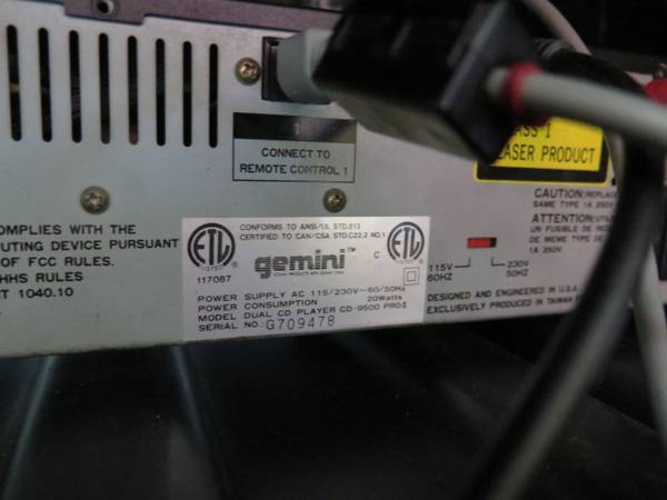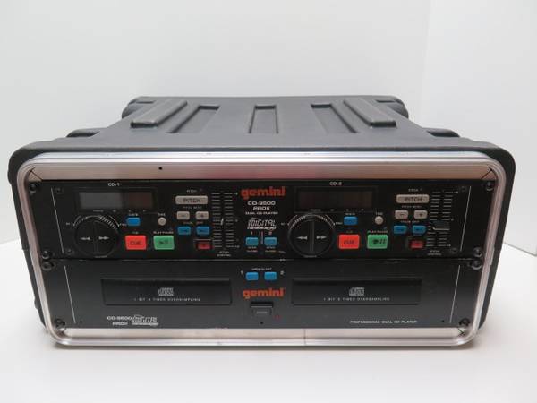 I'm offering a Vintage1997 Gemini, CD-9500 PROII, Dual CD Player, that needs to be Repaired. It Powers Up, the Lights come on, the Displays illuminate, but both CD Trays will only open intermediately. At first, they didn't open at all. My guess was that the Unit was Transported without the the Discs being removed, and they had shifted, preventing the Trays from functioning. I opened it up, and there was nothing jamming the Trays. I cleaned around the Openings, and the Tray Slides, and they functioned a little better, but were still a little erratic. When the Drawers did close all the way containing a CD, They would engage and begin Spinning. I stopped the testing there, because I had reached the end of my capabilities. There might be some adjustments that can be preformed to remedy these issues, but I can't be sure. Also, the Pitch Control Knob is missing off of the Left Hand Side, or the Player Marked CD 1. I'M NOT SURE IF THERE ARE OTHER ISSUES, AS NO OTHER TESTS HAVE BEEN PERFORMED! This includes the Cables visible in my Photos, along with the SBK 4 Space ROTO RACK, Hard Transportation Case, that it's mounted in.