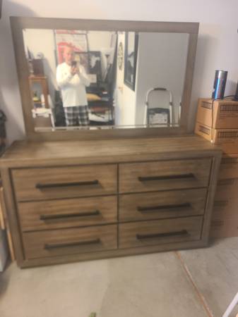 PC bedroom dresser set Dresser w/mirror Tv stand with drawers ( holds a65in TV) Night stand And End table Matching set Cash only 500 Text only