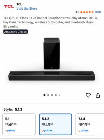 Experience premium home theater audio with the TCL Q75H Q-Class 5.1.2 Channel Soundbar, brand new and factory sealed.