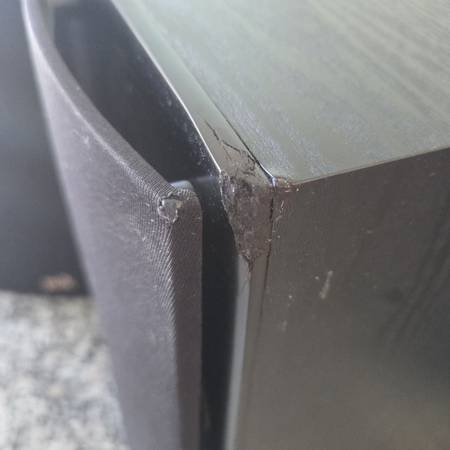 One speaker has some small damage on the corner, both work great. $60 for both