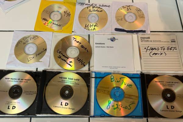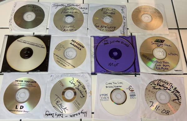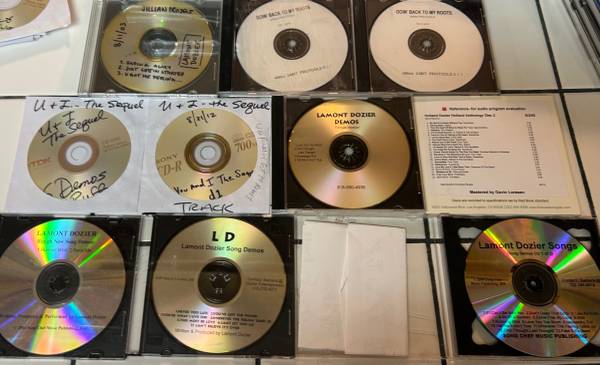 This huge lot of studio CD’s is from the estate of legendary Motown songwriter Lamont Dozier! They are from a storage unit that belonged to his ex-wife, and was bought at auction. Most are his own music, but some of the discs are demos sent to Mr. dozier from other well-known artists! See the photos for titles.