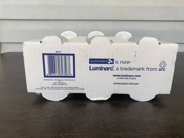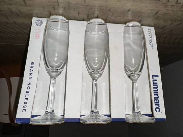 New In Gift Box: Luminrc clear champagne/wine long stem glasses. This set is "Made In The USA" in 2016 and in the original gift box.