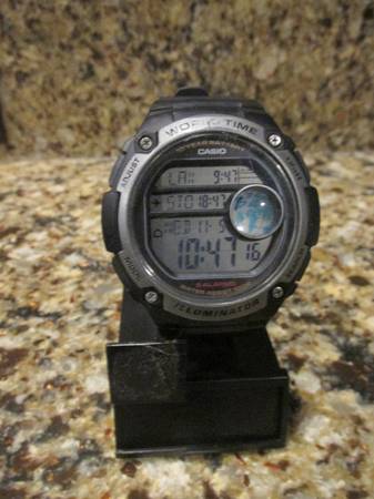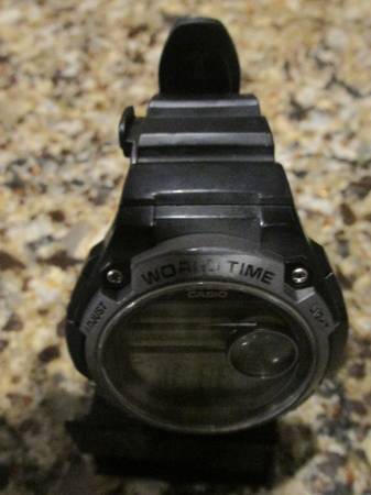 LARGE: Men's All Black Casio World Time 5-Alarm Digital Watch With 10 Year Battery.