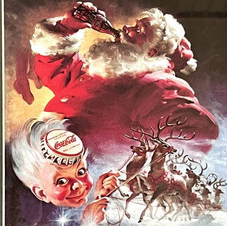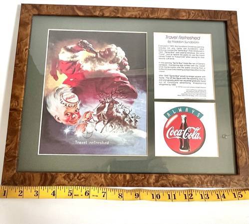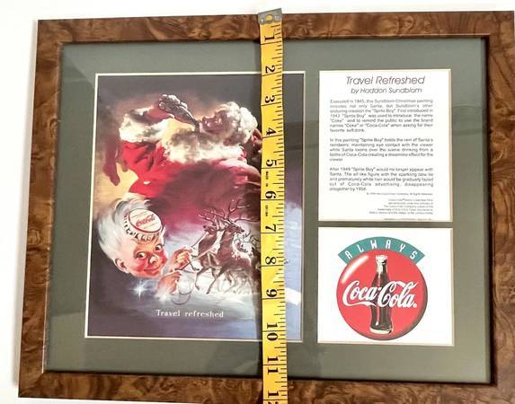 This is a wonderful piece for any collector. Would make a great Christmas Gift! Size or print inside frame is 15-inches long x 12-inches tall. I bought this from the Coca Cola Company in 1998 to give to my mother for Christmas and she never hung it up. When she passed away last year I found it in he closet inside a luggage and I got it back but I have not use for it so I am selling it.
