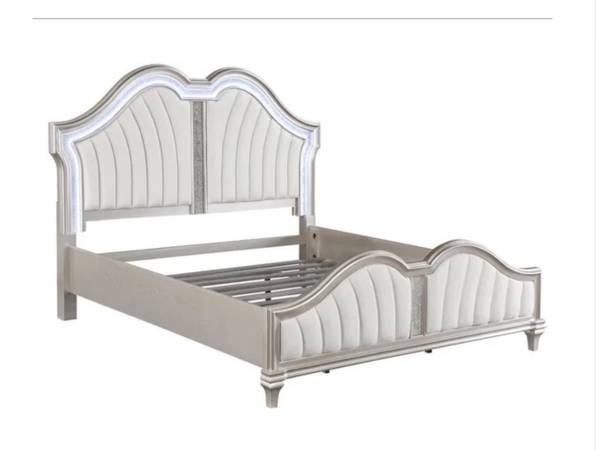 King Size Bling Light Up Padded Silver Bed frame Complete