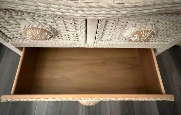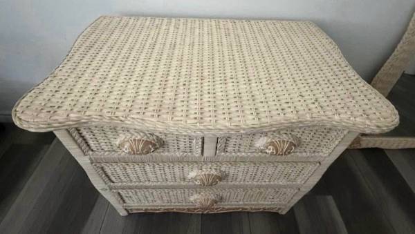 Condition: Great Condition Wicker 4-Drawer Dresser Measurements: 34” inches wide X 30”inches tall Wicker Mirror Measurements: 26 1/2” wide X 36 1/2” (Little over 3ft tall) These items are...