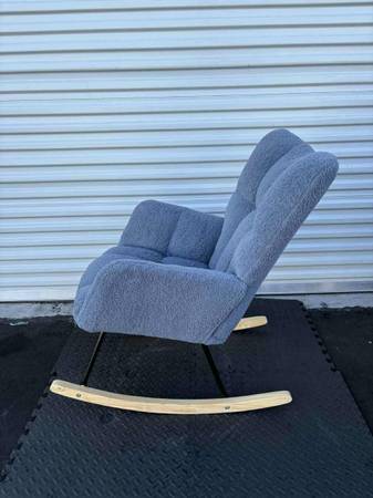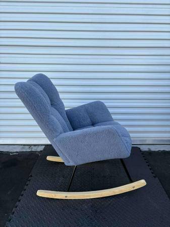Teddy Fabric Glider Chair, 300 lbs Capacity Upholstered Rocking Chair with Metal Frame, Ergonomic High Back Accent Chair for Living Room and Bedroom, Soft Tufted Lounge Chair (Light Blue)