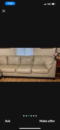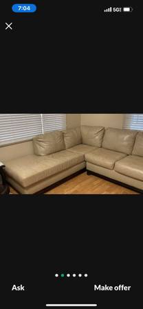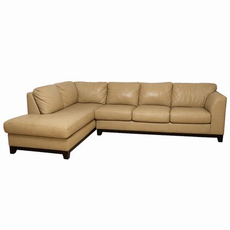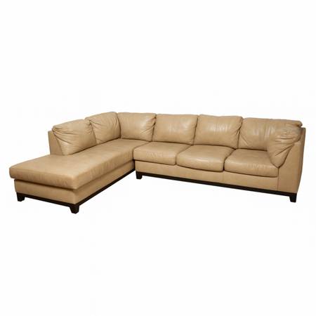 Beautiful Beige Leather Sectional Sofa – FREE Local Delivery!