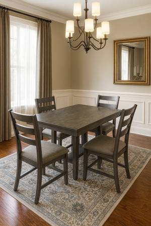 This is a clean, solid, and stylish dining set at a great price—perfect for any home!