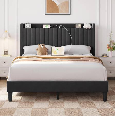Brand new velvet queen bed frame (still in box) with a brand new mattress included Same day delivery available Hablo Espanol