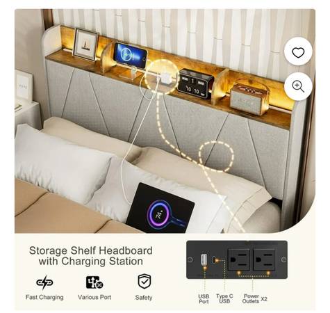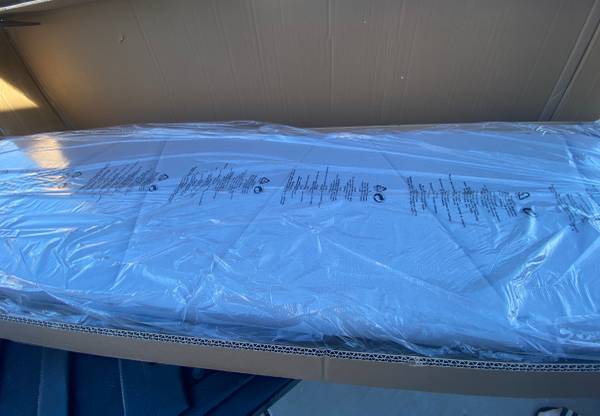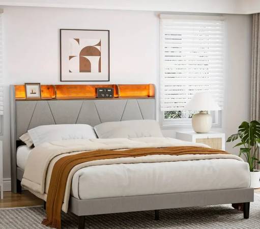 Brand new queen size bed frame (still in box) with a brand new 12” hybrid mattress included Same day delivery available Hablo Espanol