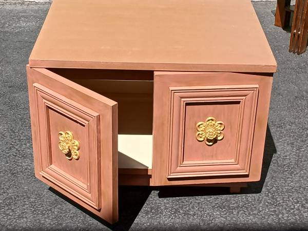 Interior: Open compartments with back cutouts for wiring or ventilation