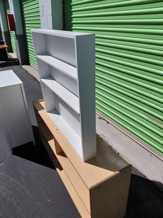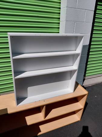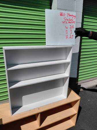 This is a simple and versatile white hanging wall shelf featuring two fixed shelves for convenient storage or display. The clean, minimalist design works well in kitchens, bathrooms, offices, or craft rooms. Constructed from laminated composite wood with a smooth white finish.