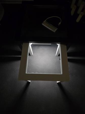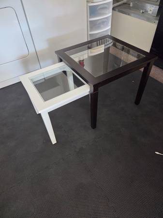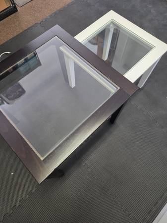 Espresso and white nesting coffee table with glass top and with LED light with remote and charge cable. Espresso table dimension: 17x17x18 White table dimension: 17x17x15 White table has magnet to...