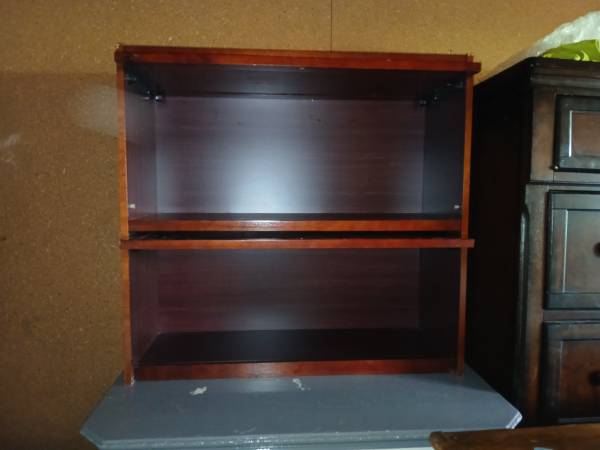 Beautiful Rosewood Credenza 2 Shelves 32 Wide x 11 Deep x 33 High This is a Barrister's Bookcase or Lawyer’s Bookcase, specifically a Stacking Sectional Bookcase. It has wooden-fronted doors that...