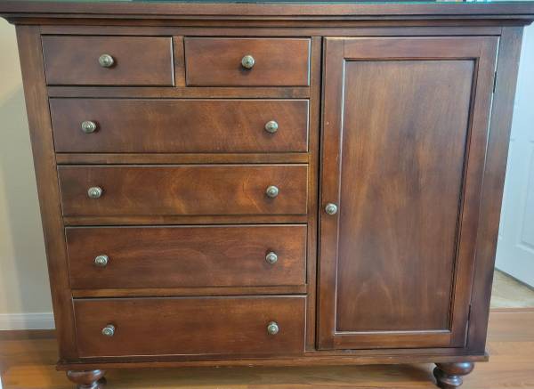 Good condition. Includes a custom cut piece of glass for the top of dresser for protection. 54" tall x 60" wide x 20" deep Asking $100 or best offer. Must pick-up. Downtown Summerlin Area