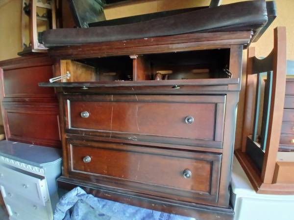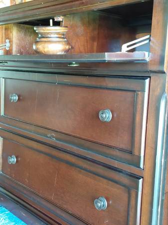 This is a dresser/ wooden media chest / hybrid, finished in a rich mahogany stain.