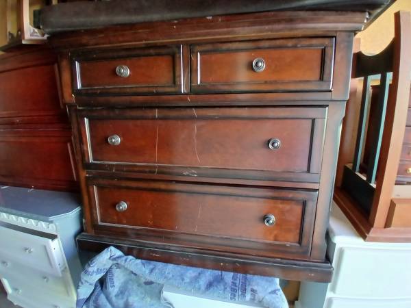 Hardware (drawer pulls and hinges) are intact.