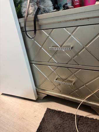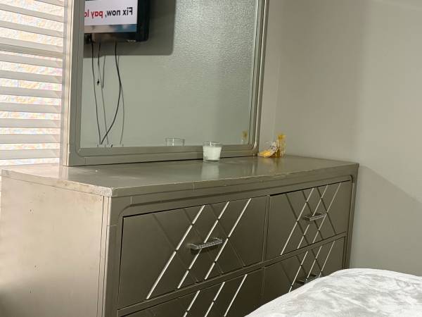 King bedroom set bed frame dresser with mirror and nightstand . In very good condition condition. There’s nothinv Broken