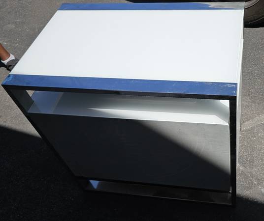 Frame: Polished chrome or mirrored trim, giving it a sleek and reflective look