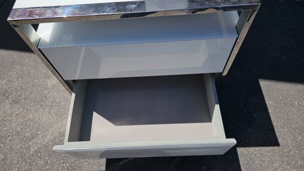 Drawers: Two spacious drawers with no visible handles (likely push-to-open or finger-pull)