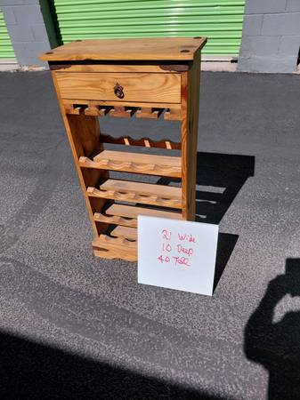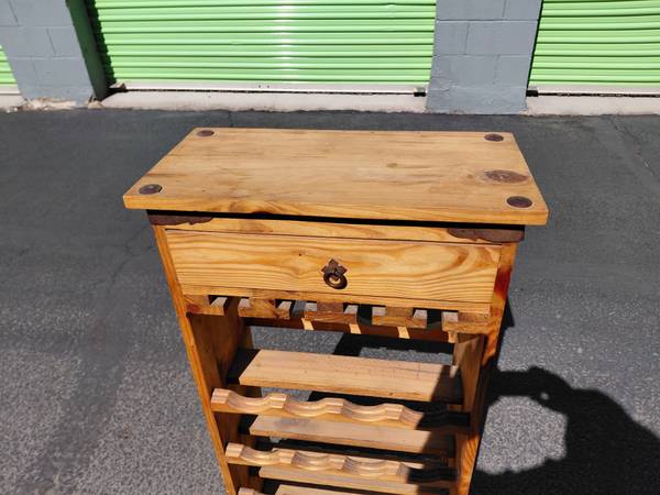 This handcrafted rustic pine wine rack offers both storage and charm. Made from solid wood with visible grain and natural knots, it features: