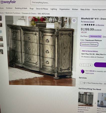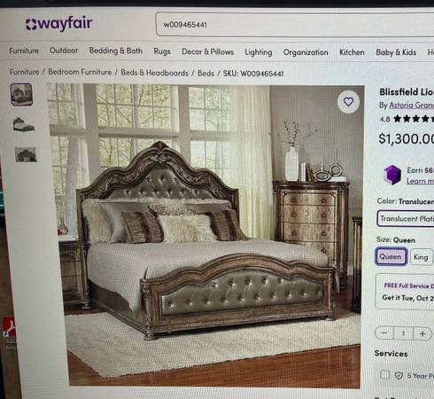 Queen Blissfield Liola Tufted Solid Wood Bedframe & a Blissfield 68" 9 drawer dresser w. a hidden drawer inside center - $1500 OBO. Paid over $3000, in great condition & no scratches. (Th...