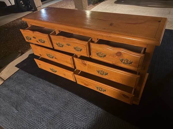 Real wood vintage dresser in excellent condition. Fully functional. Can be delivered for a $25 gas and delivery fee.