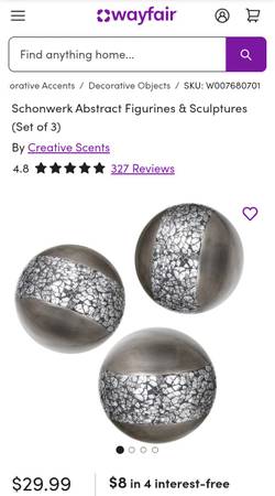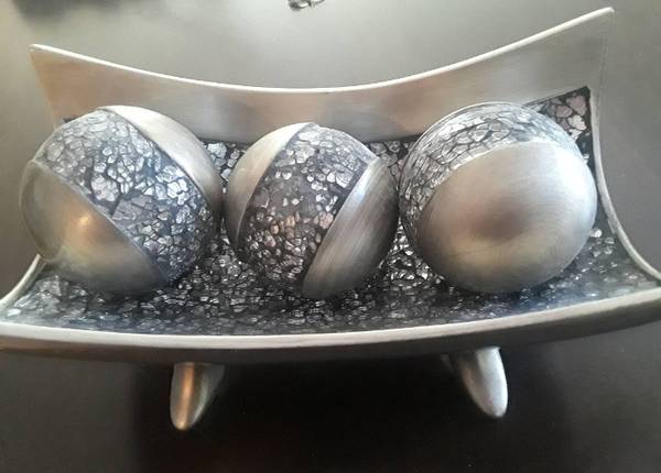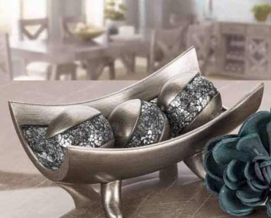 Creative Accents centerpiece decor. Schonwerk bowl with cracked mosaic trim pairs beautifully with the matching abstract orbs. Made of high-quality, heavy resin for durability.