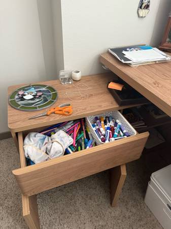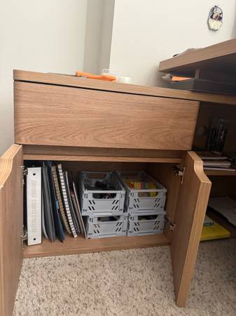 The Libre C 155 E is a practical corner desk with many advantages. The desk is particularly flexible due to mutual accountability. There is storage space on the open shelf, a big drawer, and behind the two doors —all within easy reach of your belongings! Noble roundings and thick, solid plates make the model stable and high-quality.