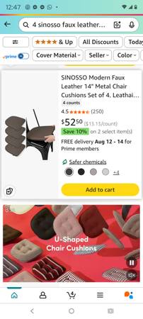 4 SINOSSO Faux Leather 14" Metal Chair Cushions. No delivery. Thank you. Pick up it up near Bonanza Rd and N Maryland. If you are interested please call me Thank you.