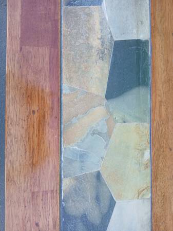 Top: Genuine slate tile inlay with varied natural hues (greens, greys, tans, and charcoal)