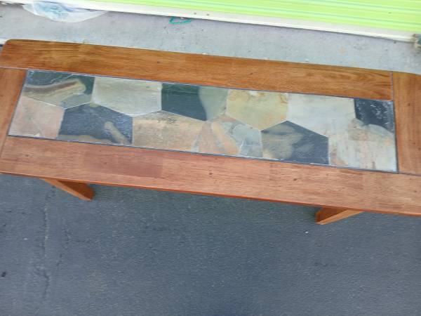 Rustic Wood & Slate Tile Hallway Console / Entry Table