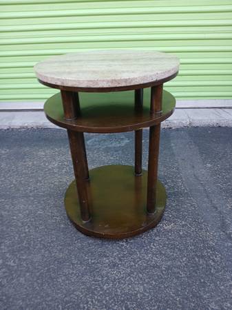 Features: 3-tier round design, sturdy construction, stone top adds weight and sophistication