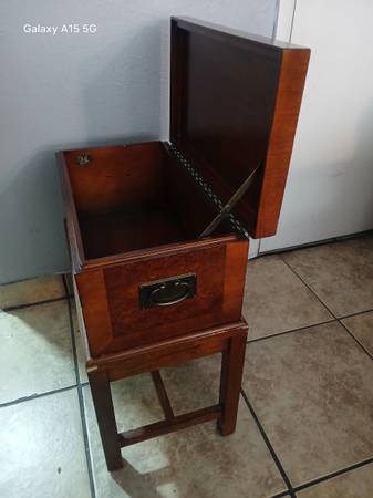 Accents Beyond Wood Box On Stand. Good condition. The box has some minor scratches to the wood,but overall still in very good condition. Measurements are as follows height of 24"with a width of 19...