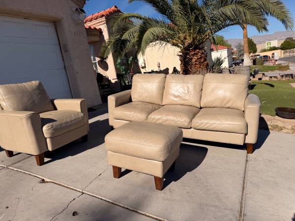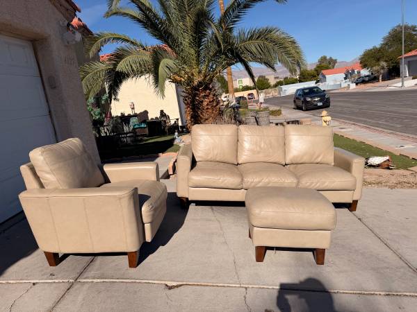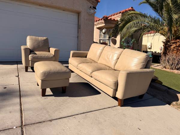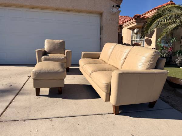 Beige Italia York Classic Leather Living Room Set Excellent conditions Measurements Sofa Dimension82"W × 37"D × 38" H Chair Dimension36"W × 37"D x 38" H Free Delivery Manage this