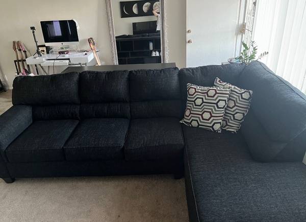 Calvin 2 Piece Onyx Left Arm Facing Sectional Sofa Excellent condition Charcoal color Measurements Width: 116 inches, Height: 38 inches, Depth: 71 inches Free delivery