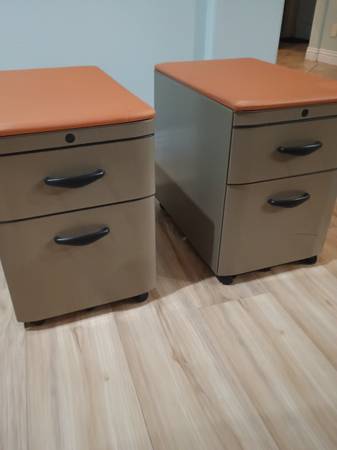 Filing cabinets on wheels, heavy duty Great Condition, you just can't lock them, I don't have the key, you would have to rekey it if you want them to lock. 1 for $30 2 for $60 Located North by Ann...