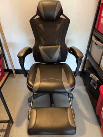 Gaming chair.... excellent condition... no tears or rips has removable back pad .... leg rest... height can adjust... reclines... no smoking no pets in our home... Obo.... thanks