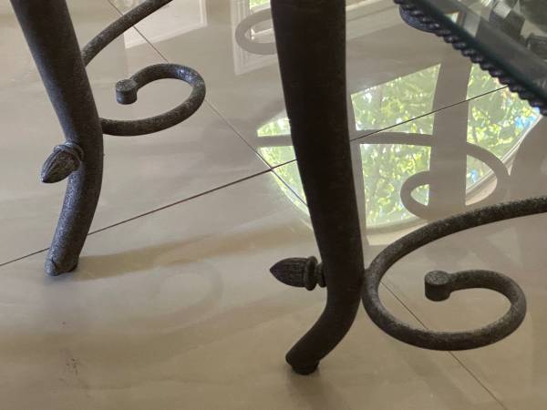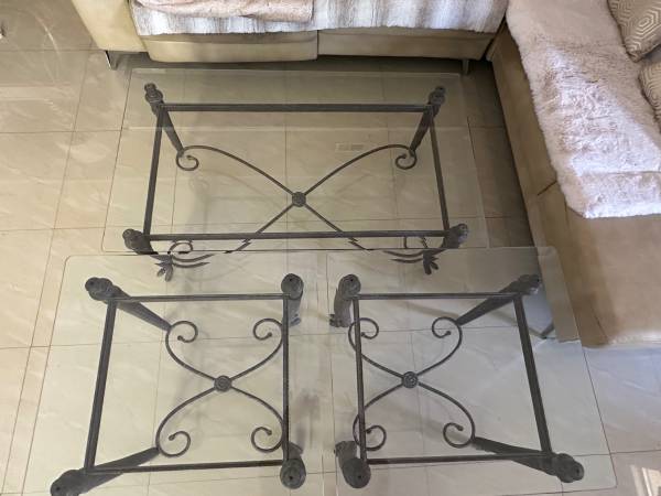 Classy coffee table with 2 side tables. Very sturdy metal frame with a glass top. Can be used indoor or outdoor.