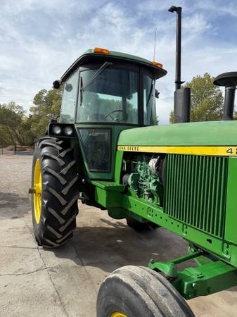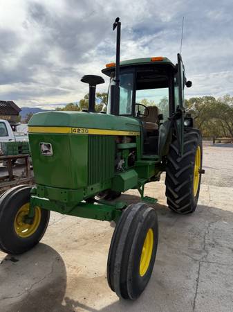 John Deere 4230 Tractor, enclosed cab, working A/C and heater, bluetooth stereo, 100 horsepower, new rear tires, alternator and starter new last year, has 540 and 1000 rpm PTO, LED lighting, hour meter is showing 7,629 hrs. Call or text for more information or to come see it.