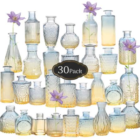 Glass Bud Vase Set of 29, Small Vases for Flowers, Mini Vases for Rustic Wedding Decorations, Home Table Flower Décor, Blue Yellow Centerpieces