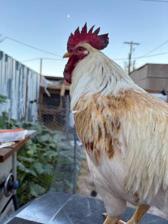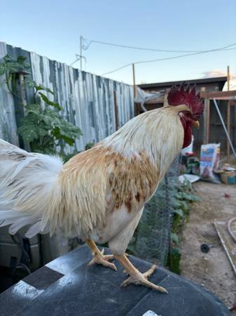 i will do $35 at least i need him gone i have so many roosters already, reason im selling him is because he got into a fight with my other roosters and thats why he has blood but he is healed alrrady