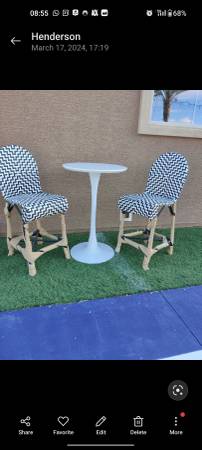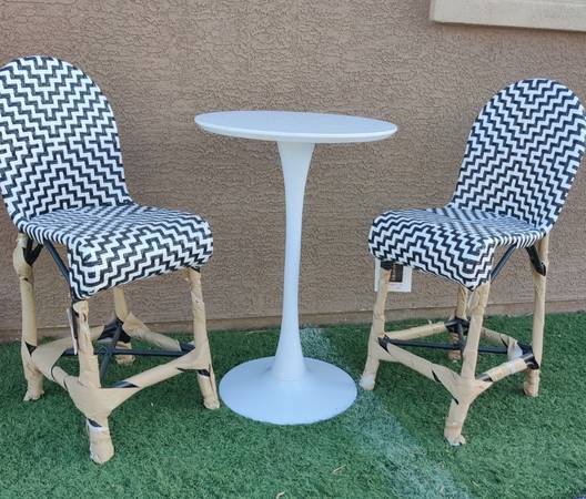 Bistro table and chairs can be sold as a set or separately. Chairs are $100 each and the table is $100