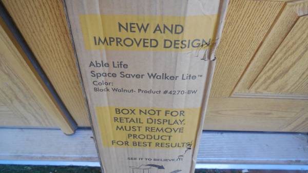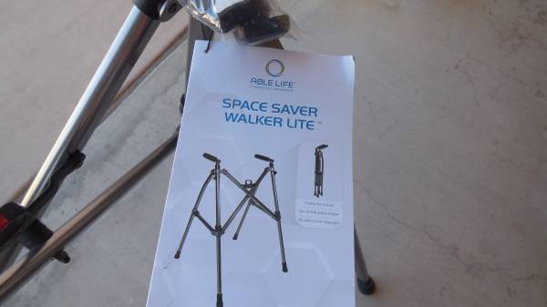 New in box, Able life space saver walker lite by Stander Inc. Has handle height adjustment, foldable, and very Lightweight. Only weighs 6 pounds, but can hold up to 300 pounds. Has 4 rubber feet, no...